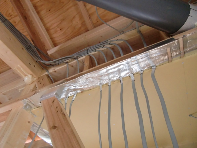 「エコエネの住まい(家)」気密処理 2013年6月15日– コメント:0– 「エコエネの住まい(家)」の気密処理の仕方を一部お見せしたいと思います。 電気配線等の配線や配管など、 一本一本丁寧に気密処理を施しています。 外気に面した部分のほとんどの配管や配線などを、こうして処理することにより、 C値(気密レベル)を確実に低く(隙間を小さく)することが可能となります。 Tags:C値 , 気密 , 高気密 コメント Cancel reply Δ