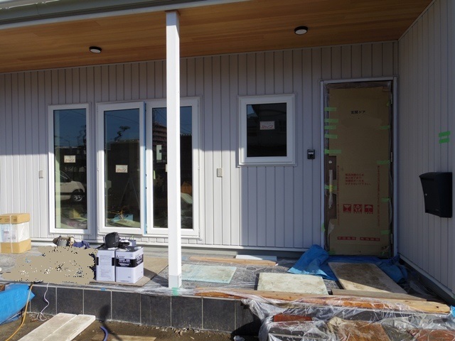建築中のエコエネの住まい(家)は、外壁材の施工が完了しました。
