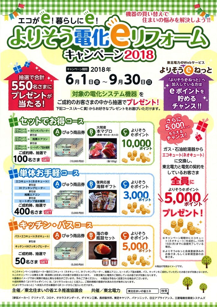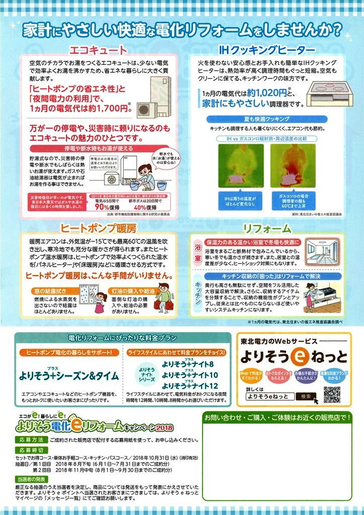 「よりそう電化eリフォーム キャンペーン2018」が開催中です。