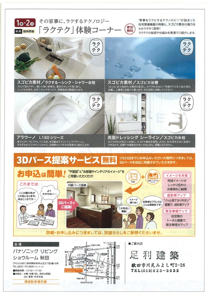 問合せ:パナソニック リビング ショウルーム 秋田 TEL:0800-170-3826(フリーコール)