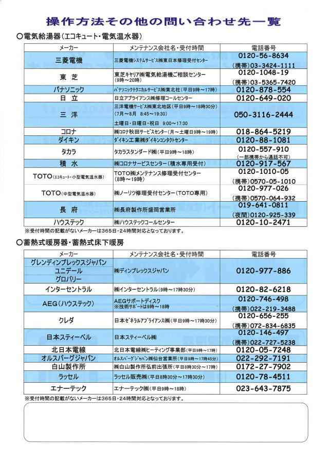 現在、エコキュートや電気温水器、蓄熱式暖房器をご使用の皆様への確認のお願いがございます。