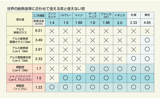 エコ先進国といわれているヨーロッパ諸国やその他の国々では、住まいを建築する際の窓の性能に一定の基準があり、