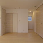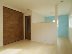 効率よくまとめられた間取りで実現可能となった二世帯の住まい。 一見するだけでは外観からは思いつかない二世帯住宅となっておりますが、廊下スペースやホール位置などを集約してコンパクトにすることが出来ました。 収納スペースもたっぷりと確保をしながら、各世帯のLDKやお部屋も高性能住宅により快適な空間となっております。 施主様と共にじっくりとお打合せをさせていただきながら建築された、完全オーダーメードの建物となっております。