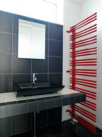 こだわりの床タイル材の選定、オーダーでの階段色やパネルヒーター色の採用など、施主様のこだわりを、足利建築が共に施工させていただきました。