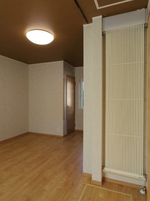 ※室内面での気密シート等による木造躯体内部面での気密処理は、外部面にて気密処理を行う施工方法に比べ、「温熱環境による気密処理部分の経年劣化」に対しても優位だと考えられます(外部面での気密テープもしくは、シーリングなどによる気密処理は、施工方法としては簡単な方法ですが、シーリング等による気密処理には施工方法など得に注意が必要と思われますので、高気密住宅の施工方法についても確認していただくことをおススメいたします)。 冷房も暖房もひとつのパネルヒーターにて行うことが出来る樹脂製パネルヒーター「クール暖」にて輻射冷暖房を行い、高性能グラスウールでの高断熱化、日本スティーベル(ドイツ製)24時間換気システムにより、常にご家族が安心して住むことができる健康住宅(家)を目指しております。